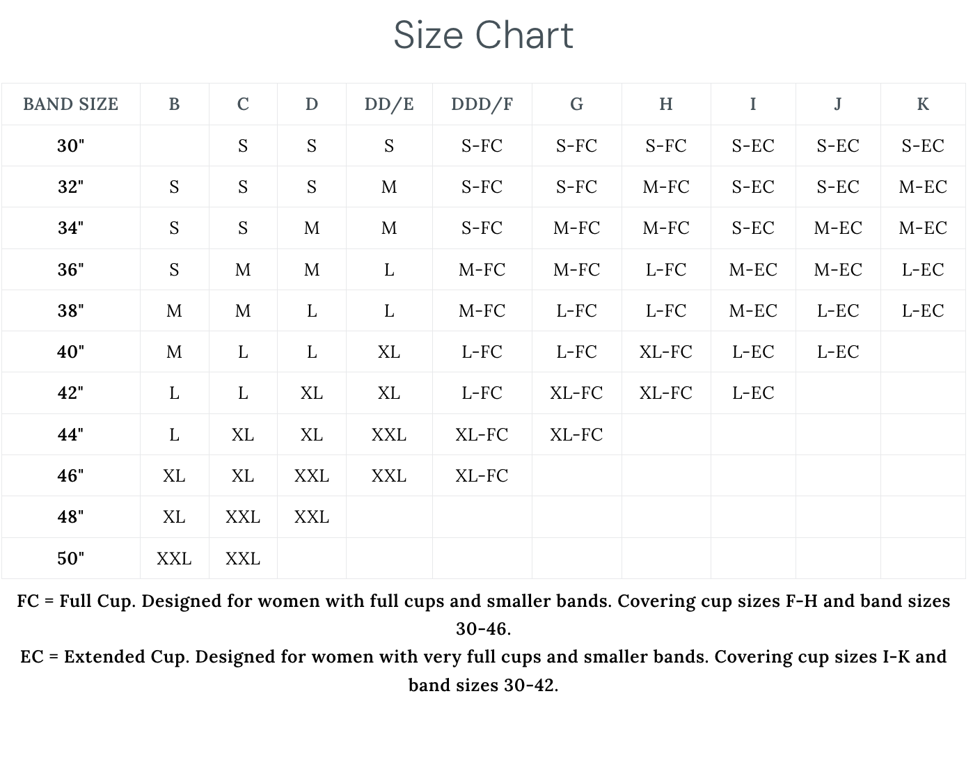 Full Cup: Fits 30-46 Bands, F-H Cups