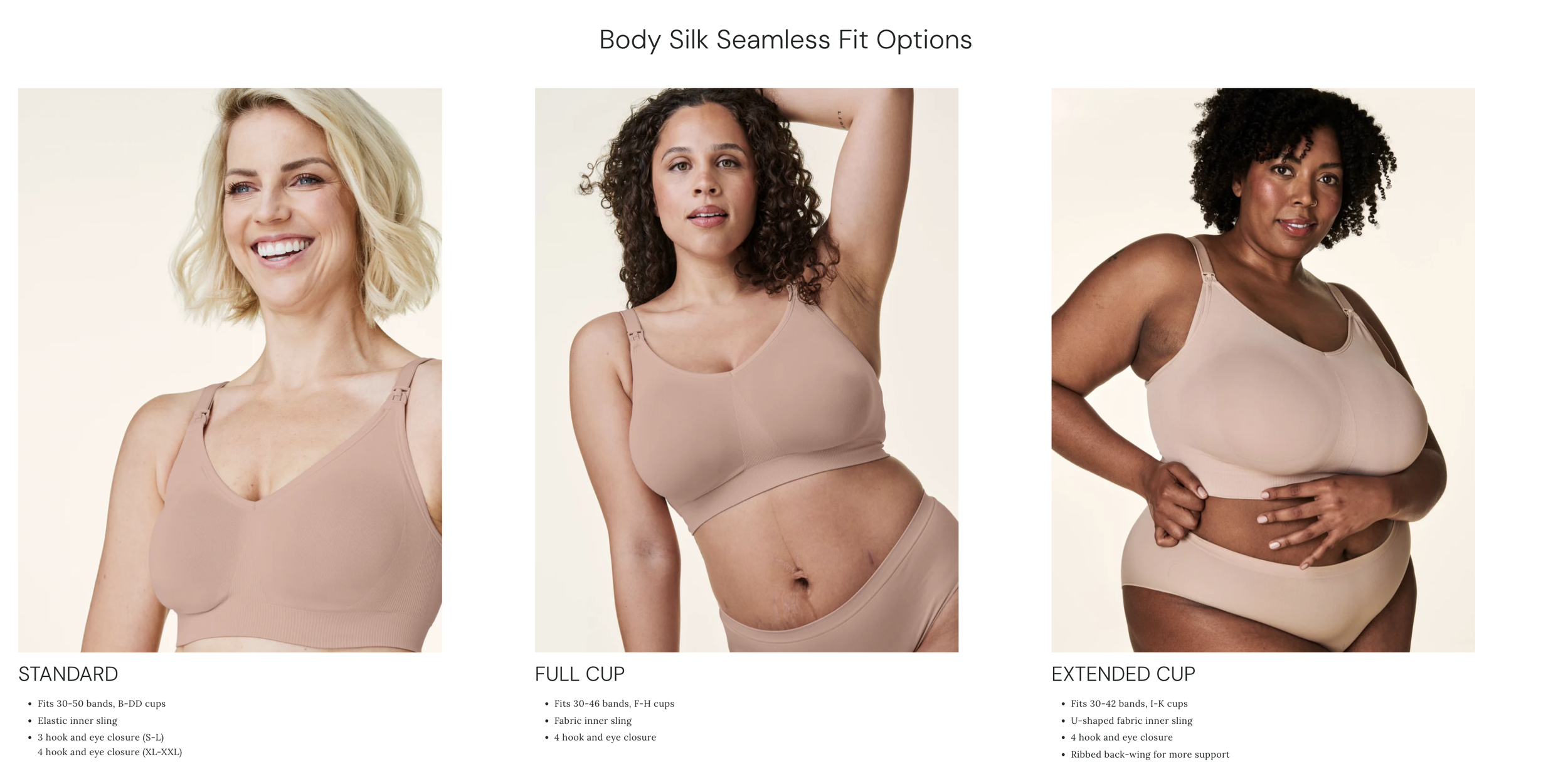 The Body Silk Seamless Nursing Bra is the ultimate seamless, comfortable experience. It is the perfect everyday, at home, on-the-go, anytime nursing bra. The luxuriously soft fabric molds to your changing shape, so that you can wear it throughout pregnancy and nursing. Scroll to the bottom for size chart.